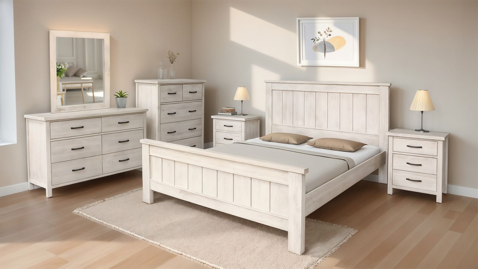 Crafted from durable New Zealand Pine with a refined white wash finish, the Ballman Dresser Table + Mirror combines timeless design with practicality. This dresser’s smooth surface and spacious drawers provide ample storage and easy maintenance, while the matching mirror enhances your dressing area with clarity and style. Ideal for creating an organized and elegant bedroom sanctuary, this set offers both functionality and aesthetic appeal for discerning users.