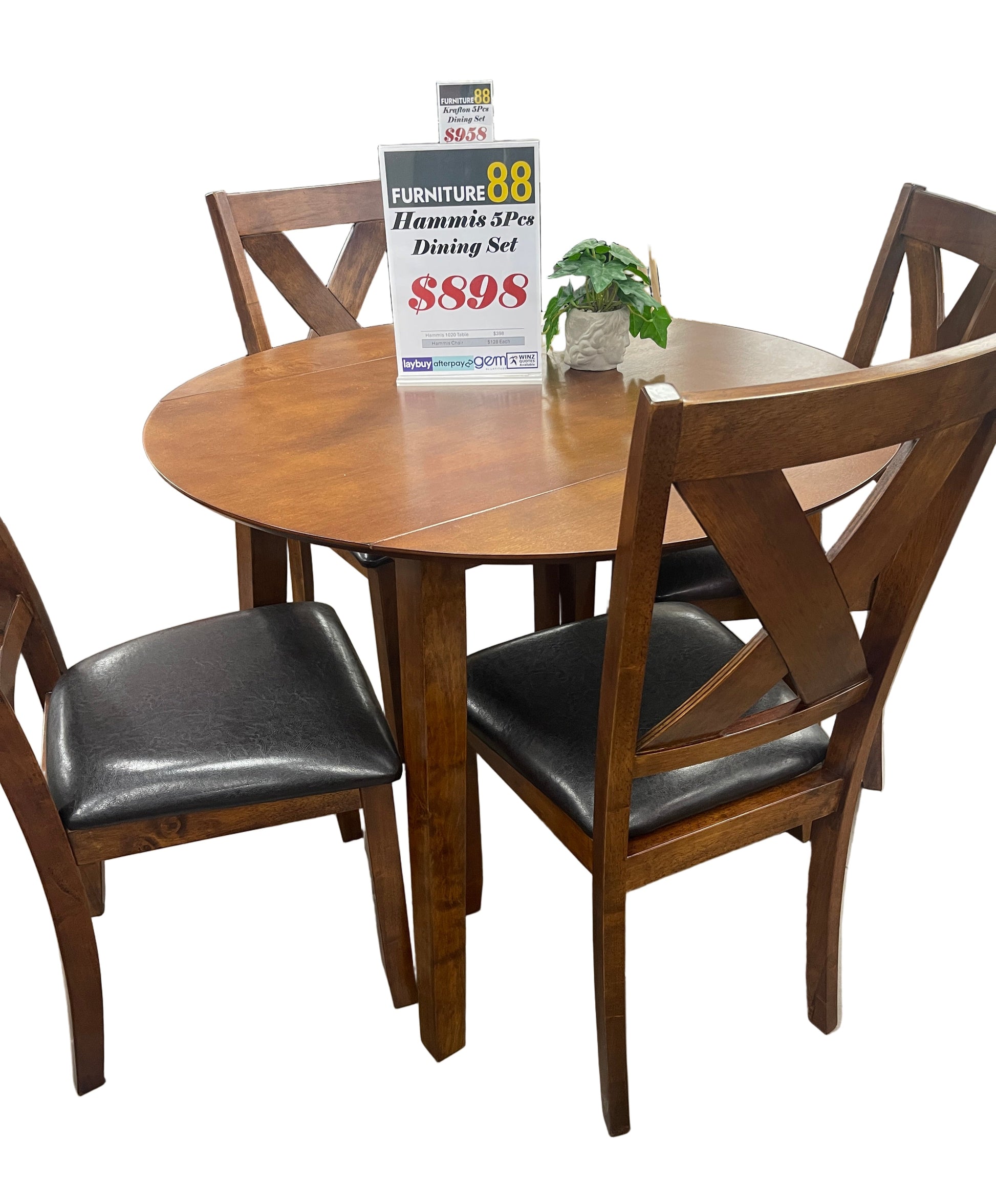 Crafted from solid timber in a rich dark oak finish, the Hammis Wooden Dining Suite features a drop-down extension round table that comfortably accommodates 2 to 4 people. Its sturdy design combines timeless style with practical functionality, while the PU leather chairs provide lasting comfort and easy maintenance. Ideal for intimate dining spaces, this suite blends durability and sophistication for a refined dining experience.
