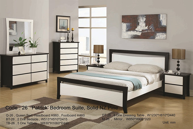 Crafted from durable NZ Pine Wood, the Partick Bedside Table features a sleek black and white finish that complements any bedroom decor. Equipped with two spacious drawers, it offers practical storage for essentials while maintaining a clean, organized look. Its sturdy construction ensures long-lasting use, making it a reliable addition to your sleep space.